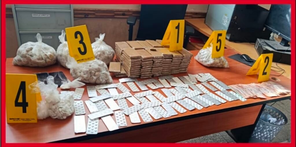وقد جرى توقيف المشتبه فيهم خلال عمليتين أمنيتبن منفصلتين جرى تنفيذهما بحي الوحده وفي البينات بمدينة الداخلة، حيث أسفرت عمليات الضبط والتفتيش التى أجريت في هذه الفضية عن حجز حوالي 11 كيلوغراماً من مخدر الشيرا 1779 غراما من مخدر الكوكايين، علاوة على 1049 قرى طبي مخدر نوع ربطوتزيل، فضلا عن أزيد من 3 كيلوغرامات من مسحوق مخدر الكيف.