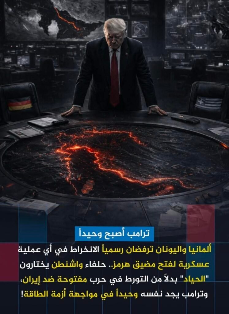 🔴 الخلاصة: ترامب يخسر “الغطاء الدولي” تدريجياً. رفض ألمانيا واليونان يعني أن أي تحرك عسكري في هرمز سيكون “أمريكياً-إسرائيلياً” بامتياز، مع غياب شبه كامل للدعم الأوروبي.