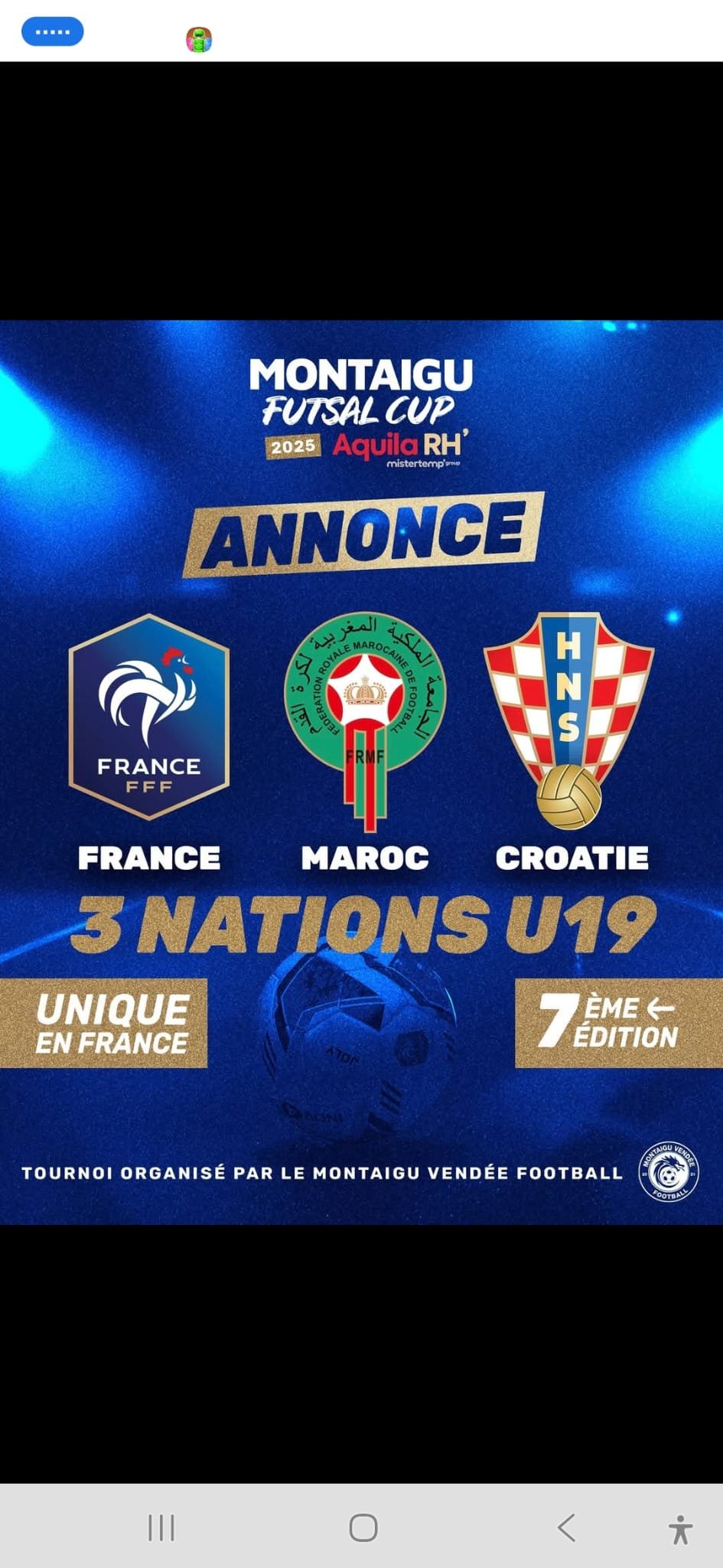من 29 أكتوبر إلى 1 نوفمبر ، يستضيف شمال منطقة “فونديه” النسخة السابعة من كأس مونتاغو للفوتسال – أكويلا RH ، وهو موعد دولي يجمع بين الشغف، والموهبة، والطموح. هذا العام، تتنافس منتخبات فرنسا، كرواتيا، والمغرب في بطولة تعد بالكثير من الإثارة.