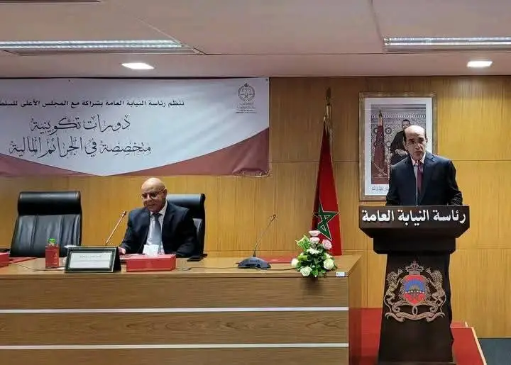 بسم الله الرحمن الرحيم والصلاة والسلام على سيد المرسلين وعلى آله وصحبه أجمعينالسيد الرئيس الأمين العام للمجلس الأعلى للسلطة القضائية نيابة عن السيد المنتدب للمجلس الأعلى للسلطة القضائية؛السيد مدير الشرطة القضائية بالمديرية العامة للأمن الوطنيالسيد ممثل القيادة العليا للدرك الملكي؛السادة المسؤولون بالمجلس الأعلى للسلطة وبرئاسة النيابة العامة؛السادة المسؤولون القضائيون السيدات والسادة القضاة؛السيدات والسادة ضباط الشرطة القضائيةحضرات السيدات والسادة كل باسمه وصفته والاحترام والتقدير الواجب لشخصه.يطيب لي بداية ان أرحب بكم جميعا في افتتاح أشغال هذه الدورات التكوينية التخصصية التي تنظم بشراكة بين رئاسة النيابة العامة والمجلس الأعلى للسلطة القضائية، كما أود أن أعبر لكم عن خالص شكري لكل من ساهم في التهيئ لها، والشكر موصول للسادة الخبراء المكونين على سخائهم في مشاطرتنا معارفهم و تقاسم خبراتهم الغنية، وأخص بالذكر هنا خبراء كل من المجلس الأعلى للحسابات ، والمفتشية العامة للإدارة الترابية، والمفتشية العامة للمالية، والوكالة القضائية للمملكة، والهيئة الوطنية للنزاهة والوقاية من الرشوة ومحاربتها والمختبر العمومي للتجارب والدراسات.